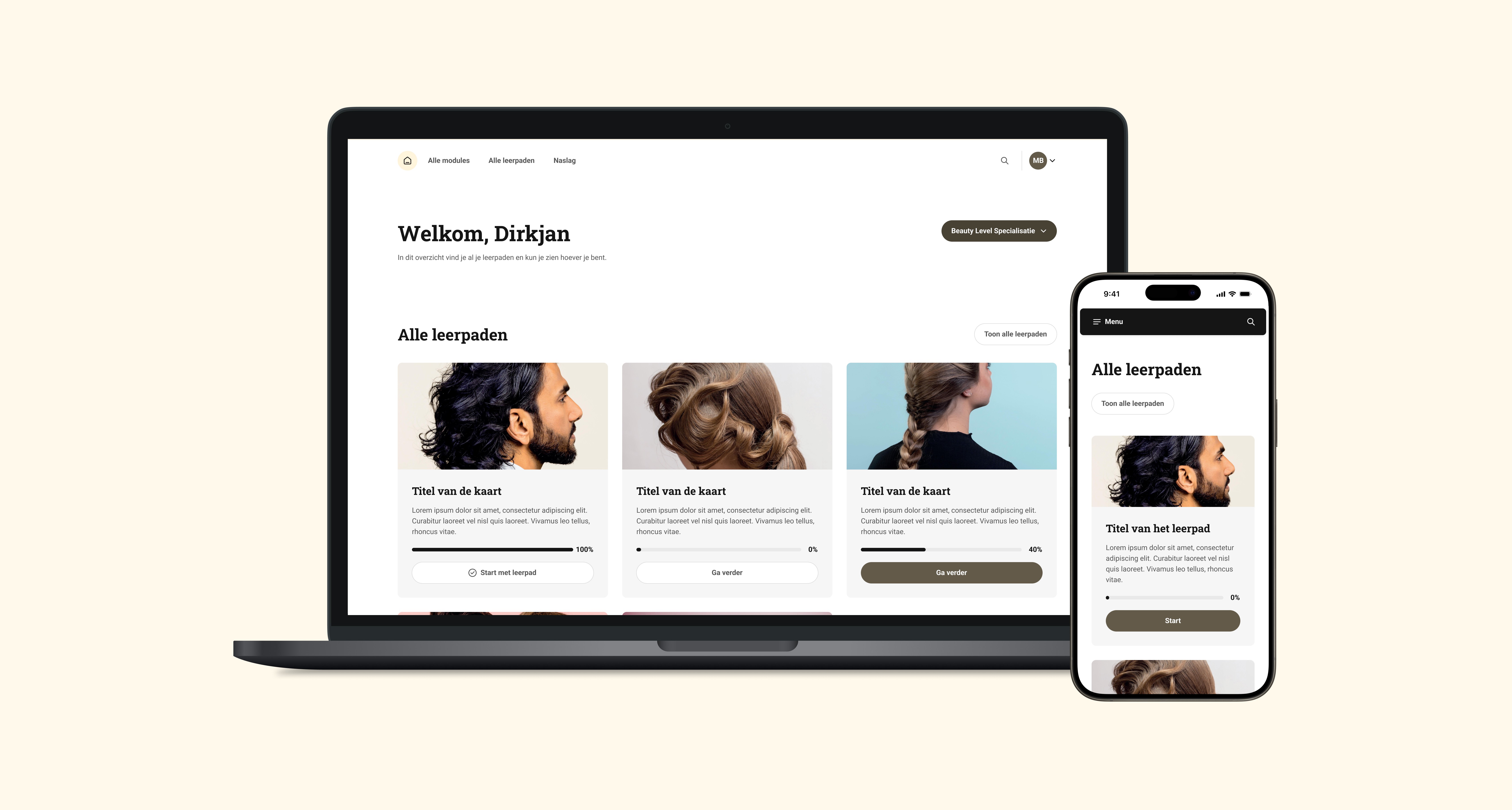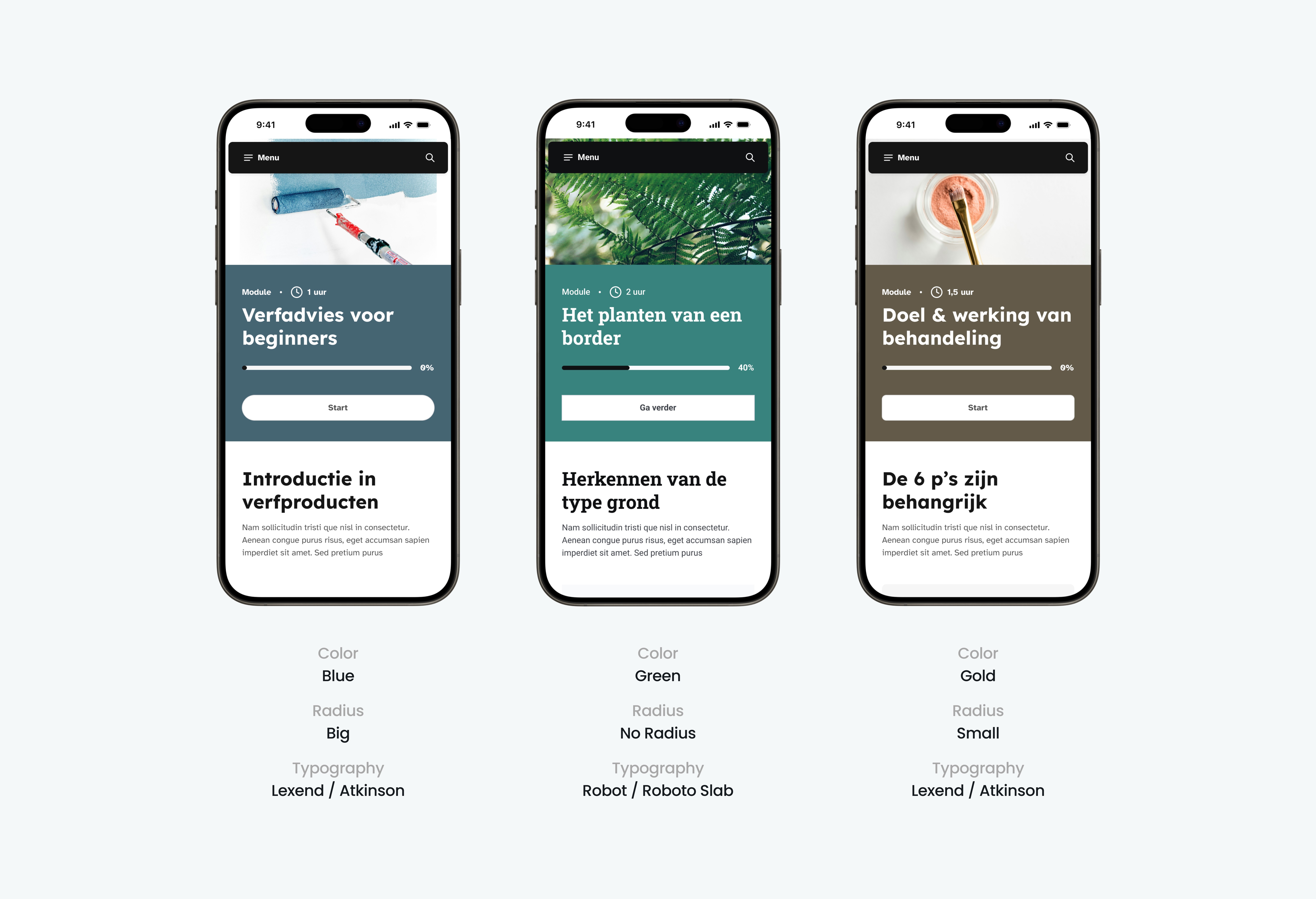 The current training platform had become outdated and inconsistent due to changes made over the years. Because we wanted to launch this new platform for all 3 clients, one of the requirements was to set it up as a multi-brand. The aim was to keep it clear in both design (Figma) and front-end (Tailwind setup).